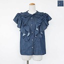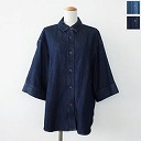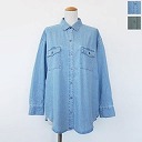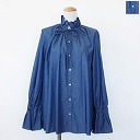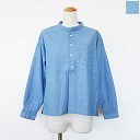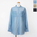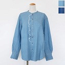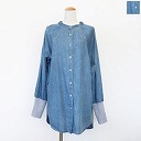 PASSIONE (パシオーネ) デニム ロング バンドカラー 袖リブ コットン ブラウス 216979 |