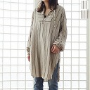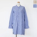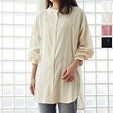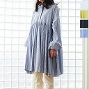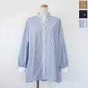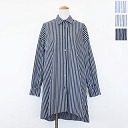 cafune (カフネ) バンドカラー 長袖 ストライプ チュニック丈 ストレッチ ラウンドヘムシャツ 335949 |