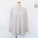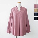 PASSIONE (パシオーネ) パールボタン ギャザー 長袖 スタンドカラー ウォッシャブルブラウス 236961 |