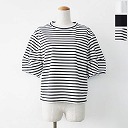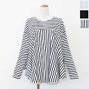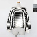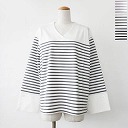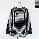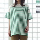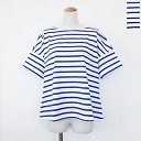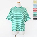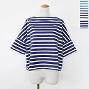 LE MELANGE (ルメランジュ) ボーダー ドロップショルダー ラウンドヘム オーガニックコットン Tシャツ 8321011 |