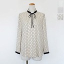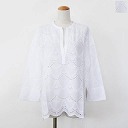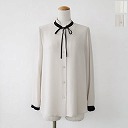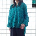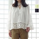 BRAHMIN (ブラーミン) ケミカルレース ピンタック バンドカラー リボン サイドスリット ブラウス B18305 |