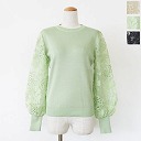 Priority (プライオリティ) 袖レース クルーネック ウォッシャブル ニット P21280 |