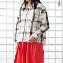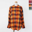 D.M.G (ドミンゴ) スタンドカラー チェック サイドスリット 長袖 ドロップショルダー シャツ 16-0693X |