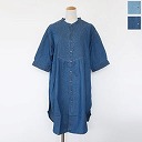 D.M.G (ドミンゴ) ライトオンス デニム スタンドカラー ドロップショルダー ラウンドヘム シャツ 16-0695E |