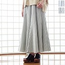 Priority (プライオリティ) ワイドプリーツ ウエストゴム ストレッチ ロング スカート P21167 |