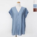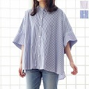 PASSIONE (パシオーネ) スタンドカラー ワイドシルエット 半袖 ラウンドヘム ブラウス 226925 |