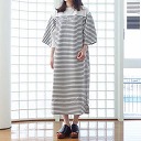 PASSIONE (パシオーネ) 異素材切替 パフスリーブ キーネック コットンロング ワンピース 226105 |