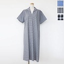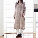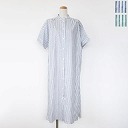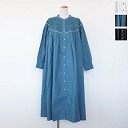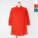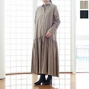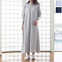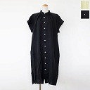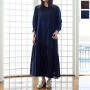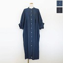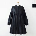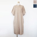 Vent d'ouest par Le minor (ルミノア) フレンチリネン バンドカラー 長袖 ギャザー ワンピース EL11205 |