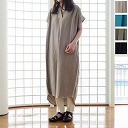 PASSIONE (パシオーネ) スキッパー フレアシルエット 半袖 バックボタン ロング ワンピース 226115 |