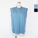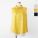 cafune (カフネ) バンドカラー ギャザー ノースリーブ サイドスリット ブラウス 335902 |