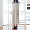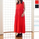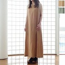 LE MELANGE (ルメランジュ) フレンチリネン ギャザー サイドスリット ロング キャミ ワンピース 8323204 |