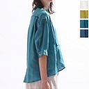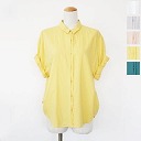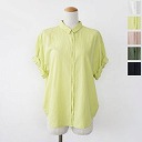 PASSIONE (パシオーネ) 袖ロールアップ ドロップショルダー タック ラウンドヘム コットン ブラウス 226984 |