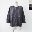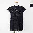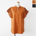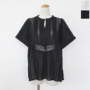 Espeyrac (エスペラック) レース 切替 バンドカラー 半袖 ウォッシャブル ブラウス 7223201 |