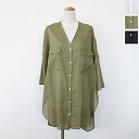 anana (アナナ) パールボタン 長袖 バンドカラー ラウンドヘム オーバーシャツ a55-012 |