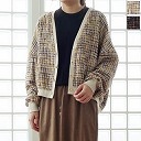 MyLanka (ミランカ) クルーネック ドロップショルダー 長袖 ツイード ニット ジャケット M98510 |