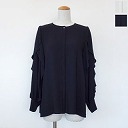 PASSIONE (パシオーネ) 袖フリル ノーカラー 長袖 サイドスリット ストレッチ ブラウス 336919 |