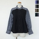 Dignite collier (ディニテコリエ) 異素材切替 スキッパー 長袖 ドロップショルダー ブラウス UMC-804709 |