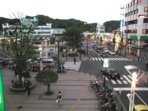 実は、お店の2階の天井が雨漏りをし、一度防水工事をしたのですがまた雨漏り。なにしろ古いビルなので。で、工事をしたのでこの目でたしかめなくちゃ、と先日、はしごを上って屋根に上がりました。 せっかく上ったので、屋根(屋上?)からロータリーの写真を、、、 左に見える、白い建物がJR逗子駅です。(←HP読者で逗子に来たことの無いメーカーの人へ。F社のHさんとか。) |