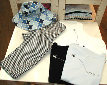 LEEの5月号の通販ページに、ハリスの蜂のTシャツが載っていました。「ブーンと飛んだミツバチのイラストをあしらった、エスプリのきいたTシャツ」と紹介されていましたが、「欲しい」と思った方は是非ウチの店で、、、(笑) それと、左上のリベルティンヌのリバーシブルハットも載っていました。ハット4900円、Tシャツ3800円です。 ついでに、左のパンツ、ハリスのチェックパンツで12000円です。 |