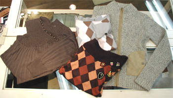 昨日も寒い突然寒い一日。長袖カットソーなど通り越して、皆様、ニットに目が行ってしまうようです。写真は人気のニット。 左から時計回りに、 マンシェ 16900円 アシッド 11000円 ブラーミン 15000円 アシッド 11000円 です。 |