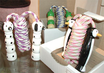 ![]() 昨日、メーカーの倉庫に行ったのですが、ニット、色々ありました。追加で入荷しています。 良かった良かった。。。おまけに、昨日は時間が少しあったので、お昼は人形町のビストロ周に寄れたし。 で、ついでに色々なところを色々探していたら右写真のようなものを見つけてしまい、思わず仕入れてしまいました。 右写真、何だかお分かりでしょうか? 縄跳びです。 犬と、ペンギンと、イモムシ。 縄の長さ計ったら、194センチくらいあったので、大人でもギリギリ飛べそうな感じ。 クリスマスのプレゼント交換などには良いのでは? |
