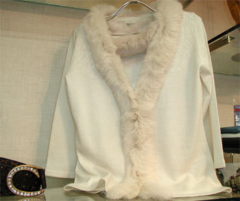 今年もファー使いの物が人気。というわけで、ブラーミンのファーが付いたニットアンサンブル。 アンサンブルの中身は、ノースリーブで、脇がシャーリングになっていて、中身だけはファーが取り外しできます。 写真では見にくいですが、カーディガンの肩部分には上品な刺繍も施してあります。 ラビットファー付きカーディガン ¥15000(税込み¥15750) ラビットファー付きノースリーブニット ¥11000(税込み¥11550) 色は、あとベージュと黒有り。 といっても、まだ見るだけで暑いですねぇ。 でも、気に入ったらGETしないと、人気商品は全国的にバッッっと売れてしまって、もう手に入らない、ということが多いのです。 それだけメーカーも売れ筋を見極めるのが難しい、ということですよね。 |