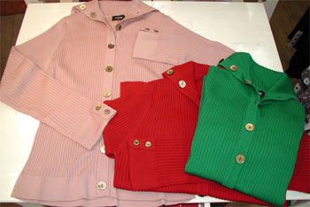 一昨日完売してしまった、「ボタンのついたカーディガン」、再び入荷しました。が、茶色やキャメルや白はメーカーでも完売。ピンク レッド グリーン ブラック の4色で入荷しています。 ¥12900(税込み¥13545) ジャンネケというブランドで、ニット専門のメーカーが作っています。 ちょっとフェミニンな雰囲気があって、どちらかというと20代〜30代前半のお客様には大人気のブランド。 ネームを変えて、大手セレクトショップなどに入っていたりもします。 |