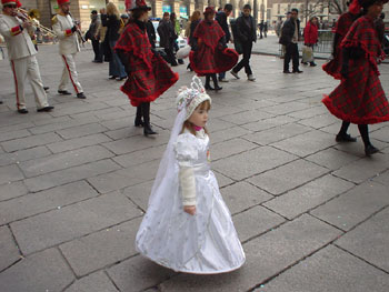 ミラノといえば、ダ・ヴィンチの最後の晩餐。というわけで、予め予約をしておいたのでサンタマリアデレグラッツィエ教会へ。 午後は、初日にゆっくり見れなかった、ヴットリオ・エマヌエーレU世通り、ヴェネツィア通りを散策。フルラ、マレーラ、ミウミウなどをジロジロ見る。 ミラノはなぜかパレードがあって、仮装した子供達がたくさん。ツアーだと、細かく教えてくれるのだろうが、だれも教えてくれる人がいないので、とりあえずカワイイ子の写真だけパチリ。 夜8時45分の飛行機なので、5時頃にはミラノ中央駅からバスでマルペンサ空港へ。今度はちゃん二人で9ユーロの方のバスに乗りました。 空港での免税手続きは超面倒。 免税を受ける品物をスーツケースに入れていたので、一度チェックインの手続きをした後、ボーディングパスをもらい、一番遠い所にあるTAX REFOUNDのカウンターへ。 そこで、本当は中身を見せなきゃいけないんだけど、面倒なので言葉通じないフリしたら、テレビを見てる途中だったその担当者は、面倒臭そうにスタンプだけ押してくれた。 そしてまたチェックインカウンターに戻り荷物を預ける。その後、出国審査の後、その近くにあるグローバルリファウンドのカウンターで日本円で税金を戻してくれました。 |