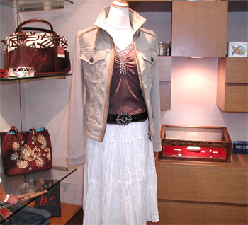 なんか、寒くなったり暑くなったりで、朝なにを着ようか読みが大切な季節。まあ暑さ寒さも彼岸までというわけで、あと1週間の辛抱です。そんな中で、春物は着実に売れています。 というわけで、右写真のコーディネート、 ●ブラーミン デニムジャケット *Sold out ¥26000(税込み¥27300) ●ブラーミンビーズ付き7分袖ニット *Sold out ¥14000(税込み¥14700) ●ピュリフィエ プリーツティアードスカート *Sold out ¥13000(税込み¥13650) ●ブラーミンラインストーンベルト *Sold out ¥8800(税込み¥9240) ジャケットは、袖と背中部分がニット地で着やすいです。 スカートは一応9号サイズ。ウエストはゴムです。 せっかくのビーズ付きニット、ビーズの光具合が写真では良く良く分かりませんので是非店頭でご確認を! |