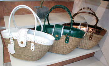 ![]() やっと春になったと思ったら、早くも雑材のカゴが入荷! 牛革(ゴールドはフェイク)を使ってあるので、キチンと感もあり、大人の人向けです。 ●ハリス レザー×雑材バッグ ¥10000(税込み¥10500) *:Sold out |