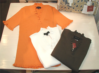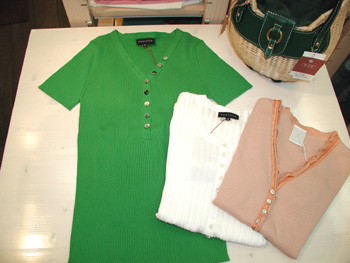 ![]() 店頭では、右写真のような、ボタン使いのニットが売れています。 真ん中の白は、ヘンリーネックだけど、Vネックは語源からしてヘンリーネックとは言わない?(でも最近はVヘンリーとか言うのかな?) というわけで、 ●ピュリフィエ ボタン使いVニット グリーン ¥9000(税込み¥9450) *Sold out ●ピュリフィエ ヘンリーネックリブニット ホワイト ¥9000(税込み¥9450)*Sold out ●ププラ サテン地ボタン使いリブニット ピンク ¥9900(税込み¥10395) *Sold out いずれも半袖です。手洗い可。 |