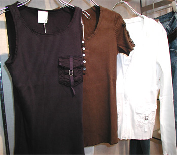 夏はこれから!というのに、既に秋を意識した色使いの商品も入荷しています。右写真は、同じ生地のシリーズで、ノースリーブは胸にポケットがあり、真ん中はヘンリーネックの半袖で袖にポケットが。一番右はダブルジップのパーカータイプ。 秋色といっても、真夏に十分着ていただける薄さなのでどうぞご安心を。 ●ププラノースリーブカットソー ネイビー *Sold out ¥7900(税込み¥8295) ●ププラヘンリーネック半袖カットソー ブラウン *Sold out ¥7900(税込み¥8295) ●ププラジップアップパーカー ホワイト PP252018-01 ¥13000(税込み¥13650) ウチの店にはめずらしい、ネイビーが新鮮! |