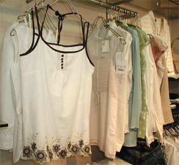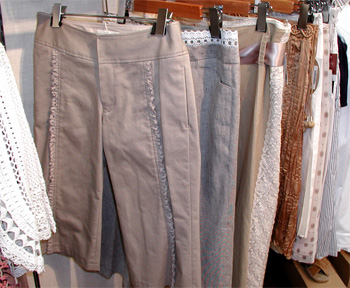 ![]() 今日、けっこう注目されていたのが、レース使いのパンツ。 今年は、フリルやレース使いのものが人気ですが、パンツにもレースが・・・ はいてみると、思いのほか甘くならず、けっこうカッコイイので。試してみる価値あり! 気になるお値段は、左の二つは、アクアフィッツで、\11800(\12390円)、\12800(\13440) 右の、リボンベルトが着いているものはベアトリスで \14800(\15540) これからの季節、海の近くでは短めのパンツが必需品ですよ! |