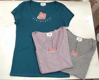 ![]() 8月も半ば近くなると、秋物もだんだん増えてくる。 右写真は、ハリスのカットソー。 シンプルでキラキララインストーンがさりげなく、 1枚でも、ジャケットのインでもこれから必要なカットソーです。 ●ハリス ラインストーンカットソー FK6213205 ¥7000(税込み¥7350) コットン70% ウール30% ダークブルー有り。 今年はグレーも良さそう・・・・・・ |