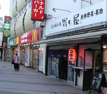 ![]() この店、知ってます? 最近、看板が綺麗になって、昼は野菜とか売ってる。 お客様から、「あそこは何ですか?」という問い合わせが殺到しているので、この辺ででお答えしておきます。 以前は、「立ち呑み居酒屋松林堂」さんでしたが、今年2月頃から経営主体が変わって、今は看板の通り「寄り屋」さん。 駅前の立地を生かして、昼は野菜、夜は立呑み、土日、祝日はコロッケを販売しています。 今後も、楽しそうなものを売るかも、と。 で、写真、一応以前の教訓からマクドナルドも入るように撮ってみました! そして写真一番左が亥子屋です。 |