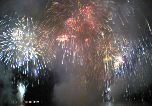 昨日は逗子の花火大会。今年は日本一だ、なんて事前触れ込みがあったので、行ってみた。 8時にお店を閉め、足早に海岸へ向かう。 やはり、逗子の花火の醍醐味は、砂浜、潮風、波の音、水面の光・・・ だから砂浜に行くに限る。(店内とかベランダとか屋上とか、一見リッチっぽいが、実は楽しみが半減するのである) 海に近づくに連れ、人が多くなり、海岸中央は混みすぎて通行止め。 西浜へ向かうが、そこも既に立ち入り禁止テープが張られ、砂浜は一杯で入れなかった。 いままでこんな込み具合はなかった。人、人、人だらけ。 134号に上がり、砂浜が見渡せるベストポジションについた時には残り10分、最後のグランドフィナーレになっていた。 コロワイドからは昨年の倍の寄付があったらしく、7000発の花火のうち、フィナーレの10分間でなんと5500発もの花火! それも、コンピュータプログラミングの音楽とシンクロした花火。スゴイ・・・・東京ディズニーランドの花火師らしい。 ホント、すばらしかった。 帰りも大混雑!人、人、子供の泣き声、自転車、人、歩行バイク・・・ 自宅まで通常10分強のハズが、なんと40分もかかってしまった・・・ ふむ。今日はオチがありませんな。 |