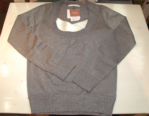 ![]() 今人気があるのは写真の、キャミソールが付いているニット。 ラメ入りですが、ラメ具合も上品でかわいい。 付属のキャミはストラップの調整ができて便利ですが、インナーを変えたりしても色々と使えそうです。 ・ブラーミン、キャミソール付きニット ¥16800(税込み) 色展開は、ブラウン、ブラック、グレー、ベージュですが、今あるのはグレーのみ。ブラウンとブラックは明日入荷予定です。 |