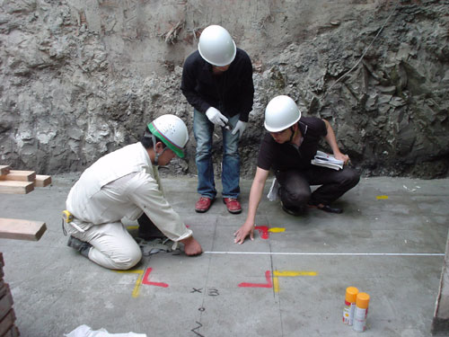![]() 1月19日の地鎮祭で神社からいただいた鎮物を、建物の中心となる柱の下に埋める。 水糸が交差する場所が柱の芯。場所は、南から北へ通り抜ける通路に出てくる柱の下で、だいたい地下6メートルくらいの場所。 安全に工事が進みますように。 また、建物が建った後も、安全に営業ができますように。 ・・・と、写真右に見える砂をかけながら一同祈りました。 |