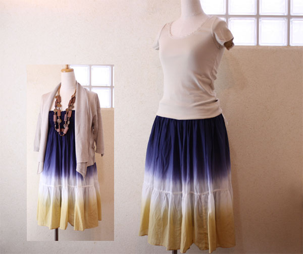 昨年から人気が続いている、マキシ丈のスカート。ちょっと大人にはズルンコズルンコしてるな、とためらわれている方には最適な長さのスカートをアップしました! 素材もシルク×コットンで、納得の質感。 グラデーションプリントでリゾート感もバッチリ。 2WAYなので、なんとワンピースとしても使えてしまいます。 リゾート地への旅にはピッタリ! お買い物はコチラ! ついでに、トップスは一見プレーンなTシャツですが、襟開きの大きさやディテールなどちょっとこだわっています。 カットソーはコチラ! ああ、気づけば久々に洋服屋らしい話題・・・ |