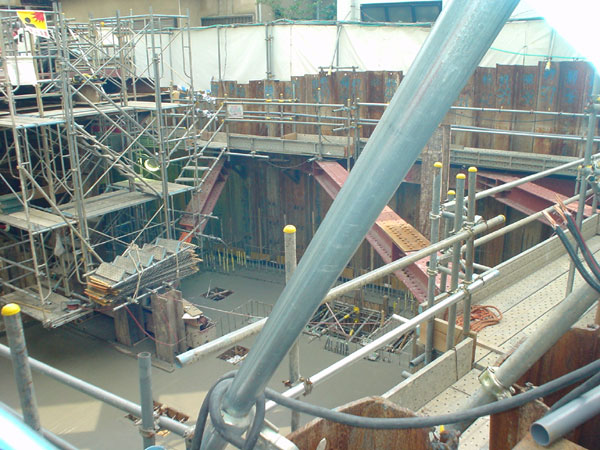 予定通り無事に地中梁、B1Fスラブのコンクリート打設が完了!これで基礎工事完了!良かった・・・ ウルウル・・・あとは基礎の周りを埋め戻しすれば、山留めを支えている腹起し梁、斜梁を撤去できるそうです。(山留めのシートパイルは9メートル強埋まっていて、B1Fスラブまでの基礎が出来上がるとGL(地上レベル)からマイナス4メートルになるので、構造上山留めのシートパイルが自立で強度を保てるのだそう。) しかし、月曜日の11時発表の天気予報で、急遽コンクリート打設を1日前倒し決定、プラントと交渉、鉄筋屋さん、その他職人さんを手配、配筋検査までに配筋をほぼ終わらせ、今日は予測どおりの曇りで打設。門倉組M所長の判断はおみごとです。 |
