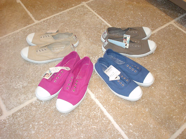 ![]() 写真は、VICTORIAというスペインのシューズブランド。 1915年創業の老舗ブランドで、もともとスペインで盛んだったゴム底のスリッパの製法を取り入れています。 ローコストで品質が高いため、とても人気があるブランドです。 こちらの商品は、紐なしのスニーカーで見た目もインパクトがあってかわいらしく、すっと履けるところも便利。けっこうオススメ! |