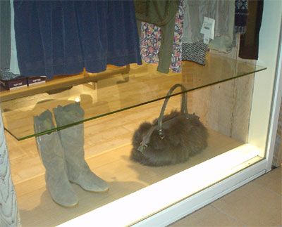 昨日の夜中、息子(そろそろ1歳7カ月)が泣きながら起きたと思ったら、突然吐きました・・・なので保育園は今日はお休み。妻も否応なしにお休み。 病院に行きましたが、原因は風邪・・・なのかなぁ、、、 辛さをまだ言葉にできず、かわいそう。 さて。写真はファビオルスコーニのブーツと、シュムックのラビットファーのバッグ。 ウインドウ下のスリムラインの照明が温かく感じる季節になって、店内のアイティムは冬本番、といった感じになっています。 気になるお値段は、ブーツが¥29,925(税込) バッグが¥24,159(税込) 写真のスウェードのブーツ詳細は、お買いもののページで。 ラビットファーのバッグは店頭でどうぞ。 |