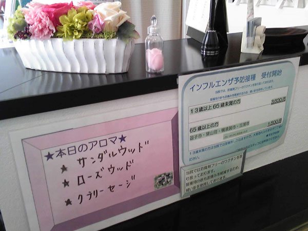 11月1日にお話していましたインフルエンザの予防接種ですが、今日、予約をしに行きました!4階の逗子メディスタイルクリニックさんに。予約のハズが、、、今ちょうどあいてますから今でもイイですよ。と。 ・・・・ 心の準備が出来ていないんだけど、、、 問診票を書き、体温を測り、イザ、、、、 R先生の問診を受けていると、J先生も登場。「ボクが注射打ちましょうか?」 「あ、、いや、、、一番痛くない方に・・・」 というわけで、一番注射をこなしてきているであろう看護師のUさんにお願いしてみました。 予測はバッチリ!ホント、痛くなかった! 大きな蚊に刺されているくらい。 何より院内はアロマの香りが漂っていて、病院ぽくなくて贅沢です。 写真は受付部分。本日のアロマと、インフルエンザの予防接種告知と、綺麗な花が飾ってある。 ついでに、今、開院6ヶ月のクリスマスキャンペーンで、メディスタイルクリニックにカルテがあるどなたかの紹介があると、紹介した方にも、された方にも、5000円分のポイントがもらえるみたいですよ!(通常3000ポイント) 美容皮膚科、形成外科、歯科、インプラント、、、、と聞くとちょっと敷居が高い気がしますが、インフルエンザ予防接種を口実に、院内を偵察してみてはいかが? 内装も凝っているので、これから家を建てる方にもオススメですよ! |