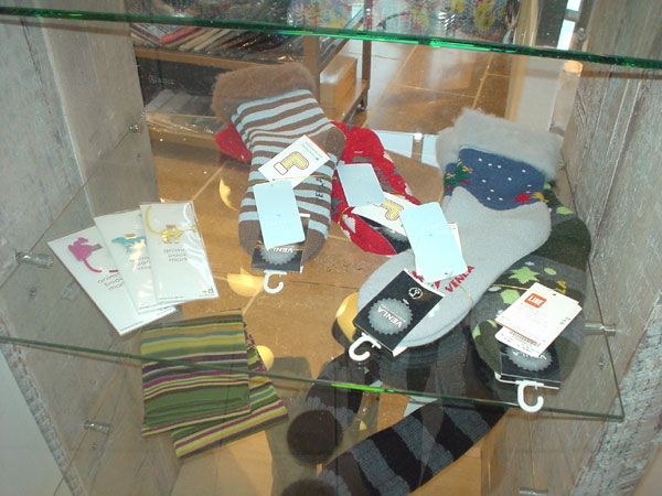 今週末はクリスマス。来週末はおおみそか。そして再来週の月曜日は1月3日。お正月終わっとるっ! 早いですねぇ、、、、 店頭では、クリスマス用のプレゼントが増えています。 で、写真はちょこっとしたクリスマスプレゼントには最適なグッズ。 写真中央の、ボーダー柄とクリスマス柄のソックスはフィンランドのもの。 中がボアになっているのでとても暖かいです。 ついでに左にあるのがおなじみアニマルブックマーク。 葉山在住のデザイナー、小野舞さんのデザイン。 いつも持ち歩く本や手帳にくっつけて、毎日癒されてみてはいかが? |