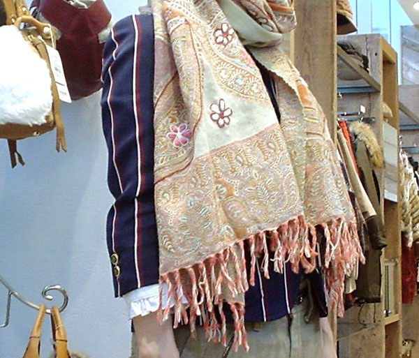 昨日も今日も、上着を着ていると日中暑いくらい。そんな調子で昨夜、薄着+薄い布団で寝たら、明け方寒くて目が覚めました。 すると、息子(2歳7カ月)は、「おとうさん ビーッ」と、ハッキリとしているけれども意味不明な寝言を言っていました。 そんなわけで、写真はインド製の刺繍もののストール。 今年は色々なメーカーからたくさん種類がでています。 日中暑くても、コレ一枚で秋らしく、暑さ調節もできるという優れもの。 気になるお値段は、¥8925(税込) お買いものはコチラ!と言いたいところですが、今日はトラディショナルのブランケットストールがアップされていますので、そちらをご覧くださいませ。 |