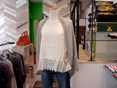 日中の日差しはまだまだ強いですが、明け方〜朝にかけてはずいぶん過ごしやすくなってきました。ってことは、もう「真夏」の格好はしていられません! というわけで、今着るには最適な商品の紹介をば・・・ ●アシェット レースブラウス ¥18900(税込) ●ハリス コットンドルマンスリーブカーデ ¥13650(税込) ●ドミンゴ 5ポケットクロップドパンツ ¥ 13650(税込) レース使いのブラウスに、ドルマンスリーブのコットンの羽織物、定番デニムを合わせていますが、羽織物とボトムの色をちょっと気にするだけで秋っぽく・・・ 狙っている方は、お早めにどうぞ。 |