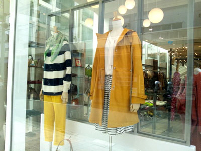 春らしく、日中のウインドウの写真を・・・ と思ったら、ずいぶんな映り込み。 まあ、それも春の雰囲気、ということで・・・(え?なんで?)写真右のボディが着ているものは、トラディショナルのコート、ジェイスローアンのリボンブラウス、そして今シーズンから新登場のブランド、アラアラのボーダースカートです。 今年のトレンド、ネオンカラーにはまだちょっと抵抗が・・・ という方は、少し明るめの色から取り入れてみてはいかがでしょう? トラディショナルのコートのページはこちら。 アラアラのスカートのページはこちら。 ジェイスローアンのブラウスは、店頭でご確認を。 |