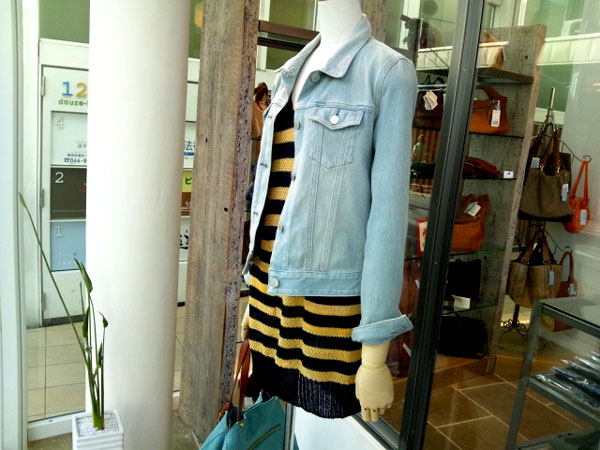 昨日、一昨日と、ずいぶん寒くて、春物を着ているのが修行になってしまうほど。 日中10度ですもんね〜・・・・ 冬ですわ。 皆様、体調管理には十分お気を付け下さい。 さて。写真は今日のウインドウの様子。 右のボディがつけている、ロングネックレスはハリスのもので、ヒマワリモチーフのミニブローチ付き。 入学式や、歓送迎会など、ちょっとした時に活躍してくれそうです。 詳しくはコチラをご覧ください。 その他、ジャケットはブラーミンのニットジャケット。お値段は¥15750(税込) パンツは、ご存知ハリス×LEEコラボのデニムパンツ。¥19950(税込) インナーはベアトリスの裾にレースがついたタンクトップ ¥6090(税込) 今年はずいぶんカラフルなものが増えています。 洋服を買うと、いつの間にか白、黒、ベージュ、紺、ブラウン、カーキ等の無難な色になってしまう方、 今年は少し意識して、明るい色を取り入れてみてはいかがでしょう・・・? カラフルな人も多いから、失敗しても目立たないかも・・・(え?) |
