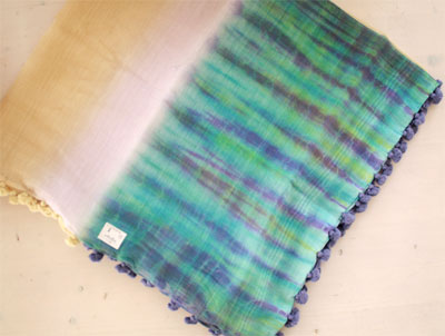 先月の24日に引き続き、今朝もアベノミクス効果による(?)1杯余分に飲んだであろう人の痕跡、、、、が、当店メインのウインドウにございまして、掃除。(詳しくは3月24日のひとりごと参照)そんな少し気持ち悪い朝を、さわやかな気分にしてくれそうなストールが入荷! シトラスのポンポン付きストール。 ちょっと変わったムラ染めのグラデーションカラーのものです。 初夏ですが、朝晩の冷え対策に、バッグにストールは必需品。 詳しくはコチラをご覧ください。 |