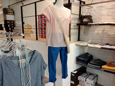 写真は、今シーズン(たぶん)当店で一番売れているパンツ、ドミンゴのサージストレッチテーパードトラウザー。ブルーも入荷しました! ネイビーを明るくしたようなブルーは、意外と合わせやすく、この夏の登場回数が増えること間違いなし! お買いものページへは近日掲載予定ですので、もう少々お待ち下さい・・・ ついでに、パンツに合わせてあるブラウスは、ピンクムスーの少しラメが入った涼しげなブラウス。 写真では分かりにくいですが、細かいボーダーとストライプのコンビになっています。 詳しくはコチラをご覧ください。 バッグは、先日もご紹介した、ヘレンカミンスキーのラフィアバッグのNatural色です。 詳細はコチラをどうぞ。 |